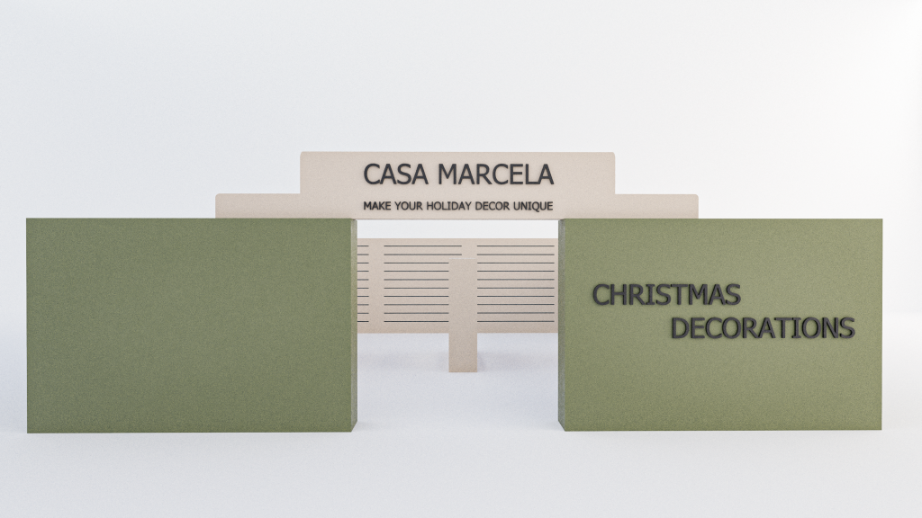 Stand para mercado navideño Casa Marcela. Este espacio está diseñado para capturar la esencia de los mercados navideños tradicionales, pero con el toque de funcionalidad, generando un ambiente acogedor, festivo y contemporáneo. Construido principalmente con pino natural y madera reciclada, ofrece durabilidad y flexibilidad al ser módulos desarmables. Se busca un encanto navideño que invita a los visitantes a sumergirse en el espíritu de la temporada.