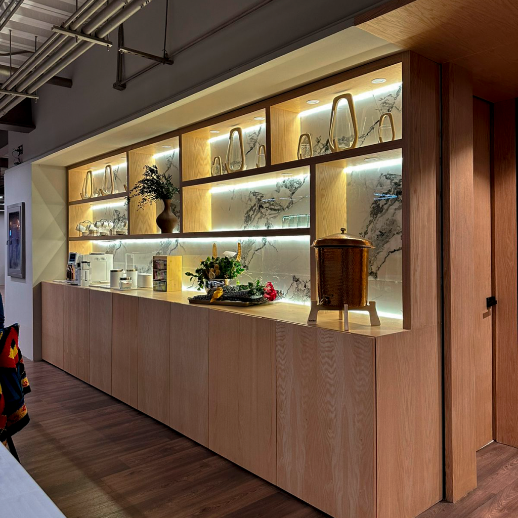 Además de los muebles a medida, se incluyó la implementación de cuadros inspirados en Crafted Mobile, piezas únicas diseñadas y fabricadas utilizando una combinación de madera, herrería y piedra. Estos cuadros, creados en colaboración con ASV, representan la perfecta armonía entre lo natural y lo industrial, destacando por su diseño artesanal y su enfoque en la calidad y los detalles.
